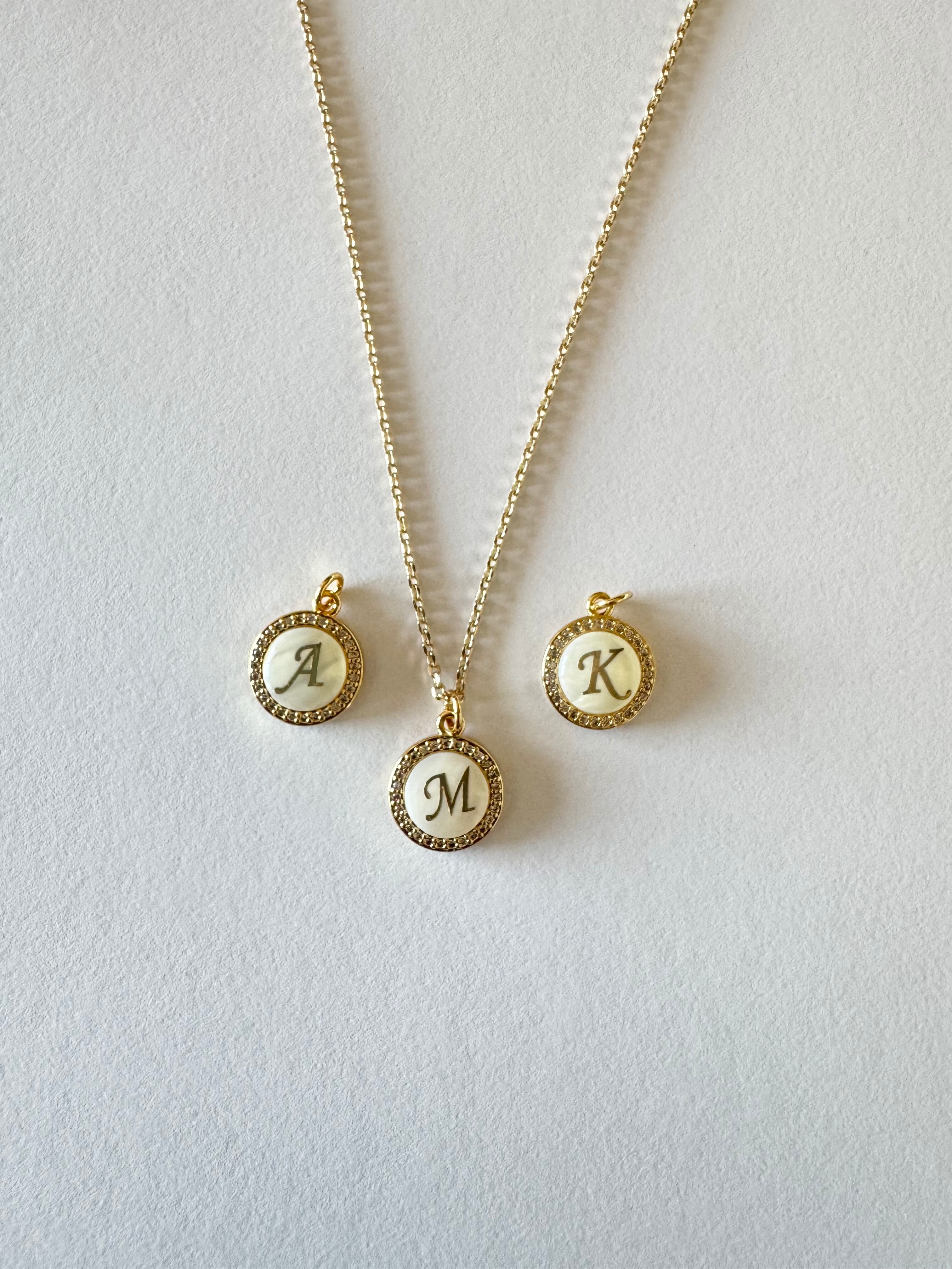 美しいマザーオブパールを使用したイニシャルモチーフのネックレスです。